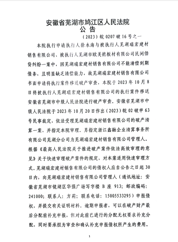 ZHEJIANG XINRONG ENTERPRISE LIQUIDATION FIRM CO.,LTD浙江省人民法院破產(chǎn)案件管理人安徽省人民法院破產(chǎn)案件管理人