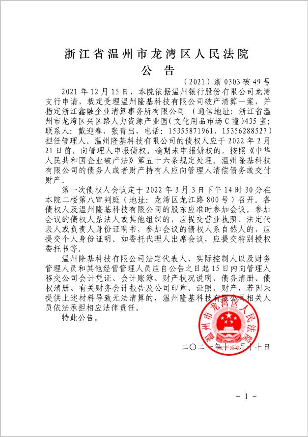 ZHEJIANG XINRONG ENTERPRISE LIQUIDATION FIRM CO.,LTD浙江省人民法院破產(chǎn)案件管理人安徽省人民法院破產(chǎn)案件管理人
