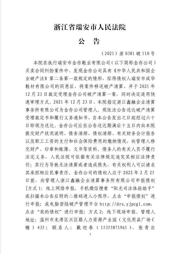 ZHEJIANG XINRONG ENTERPRISE LIQUIDATION FIRM CO.,LTD浙江省人民法院破產案件管理人安徽省人民法院破產案件管理人