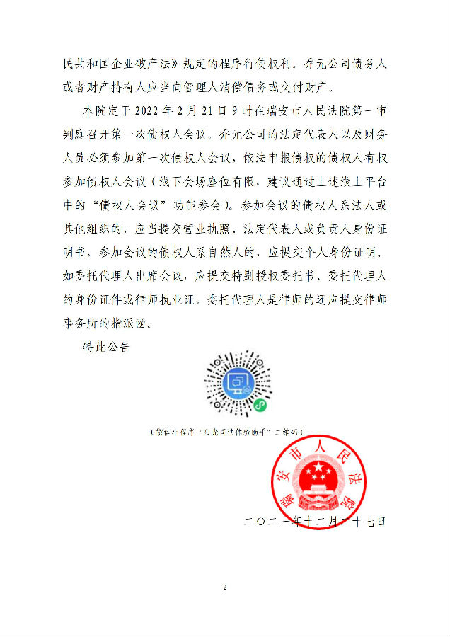 ZHEJIANG XINRONG ENTERPRISE LIQUIDATION FIRM CO.,LTD浙江省人民法院破產(chǎn)案件管理人安徽省人民法院破產(chǎn)案件管理人